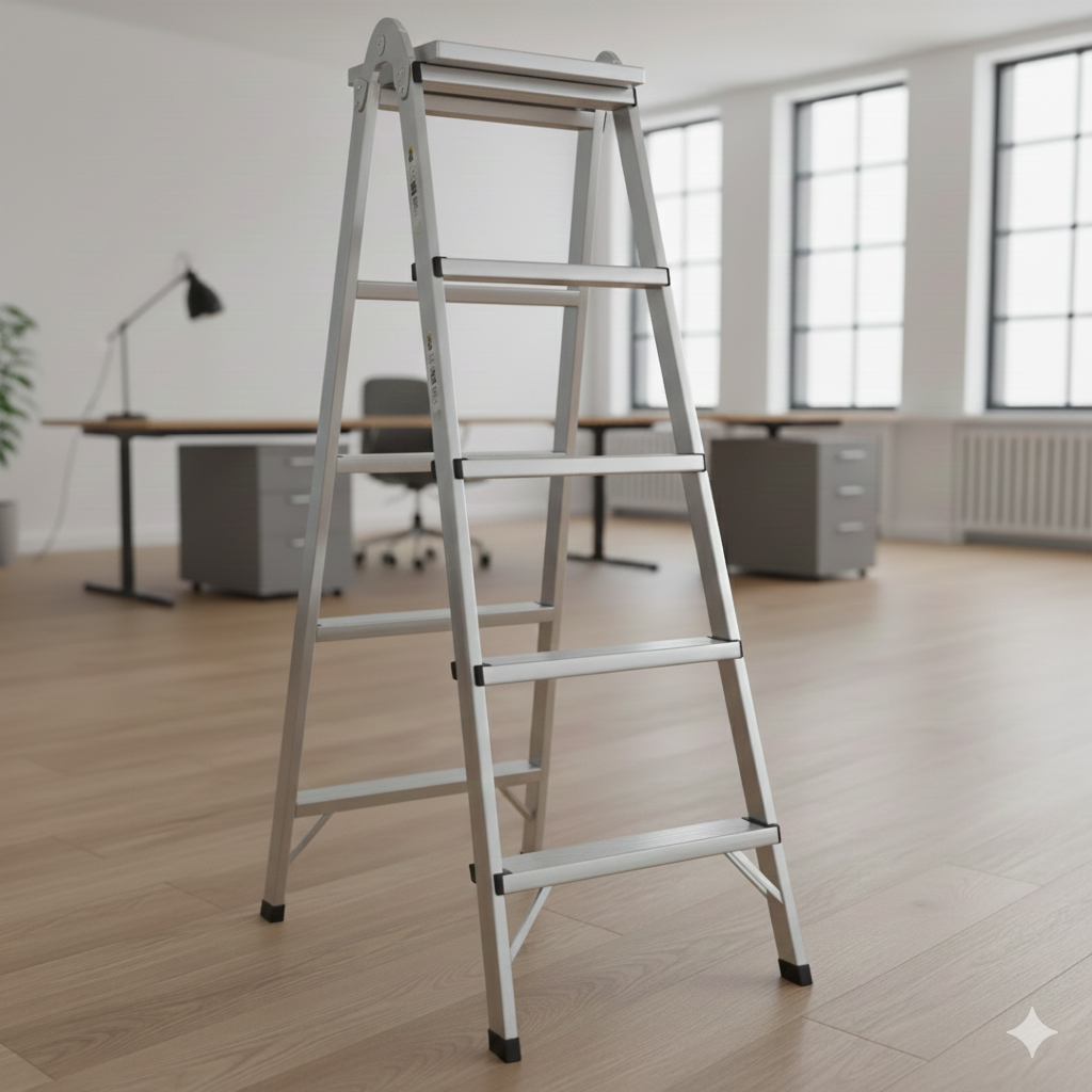 脚立を使用する際には、まず安定した平らな場所に設置することが基本です。開き止めに確実にロックをかけ、ネジやピンの緩み、脱落、踏み桟の傷みがないかを確認しましょう。