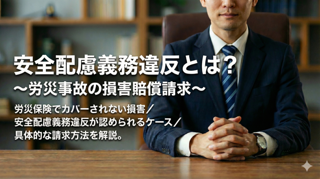 このように、この労災保険の補償だけでは、実際に被った損害を十分にカバーできない損害について、会社に安全配慮義務違反が認められる場合には、損害賠償を請求することを検討しなければなりません。